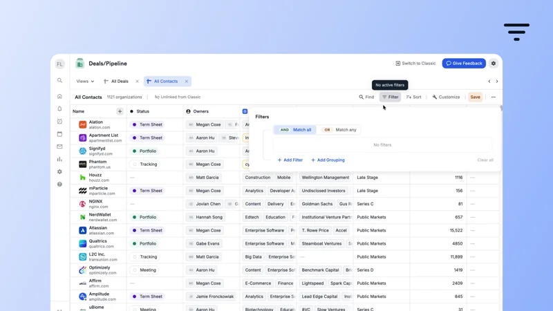 You can now filter with AND/OR logic, use expanded operators, and create filter groups. If you need to find companies that meet multiple criteria across different fields, you can do that in seconds.