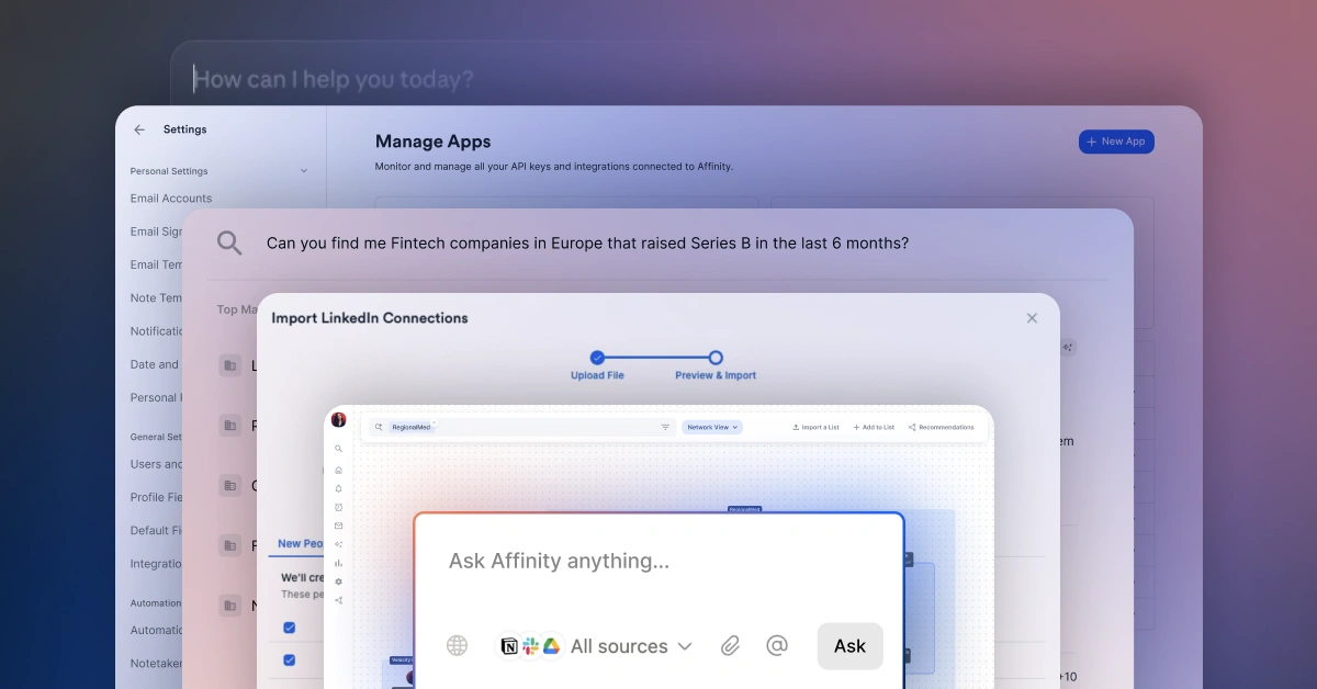 Dive into our latest blog post, “Building tomorrow’s Relationship Intelligence: A year of progress and what’s next”, where we unpack how Affinity has sharpened every workflow from sourcing to diligence to fundraising in the last twelve months. We also give you a first look at the next generation of Relationship Intelligence: think AI-powered graphs that map your entire network.